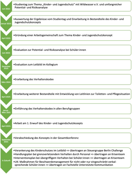 - Einberufung und Teilnahme der Schulleitung an einer Steuergruppe zur Schutzkonzeptentwicklung
