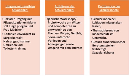 Dem Wunsch nach Aufklärung der Schüler:innen wurde und wird durch Angebote sowie Projekte mit bspw. den Berliner Jungs oder Wildwasser e.V. nachgegangen (siehe Baustein Prävention und Präventionsangebote).